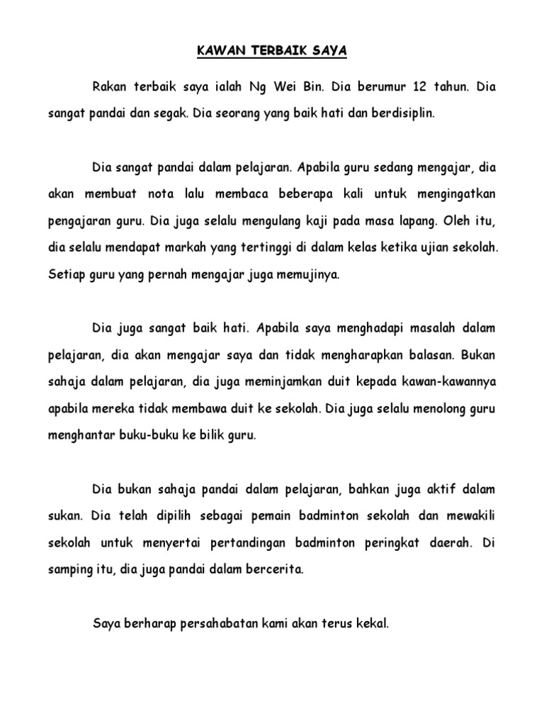 Contoh Karangan Kawan Baik Saya Pdf Karangan Kenangan Bersama Sahabat Baik Docx Document.